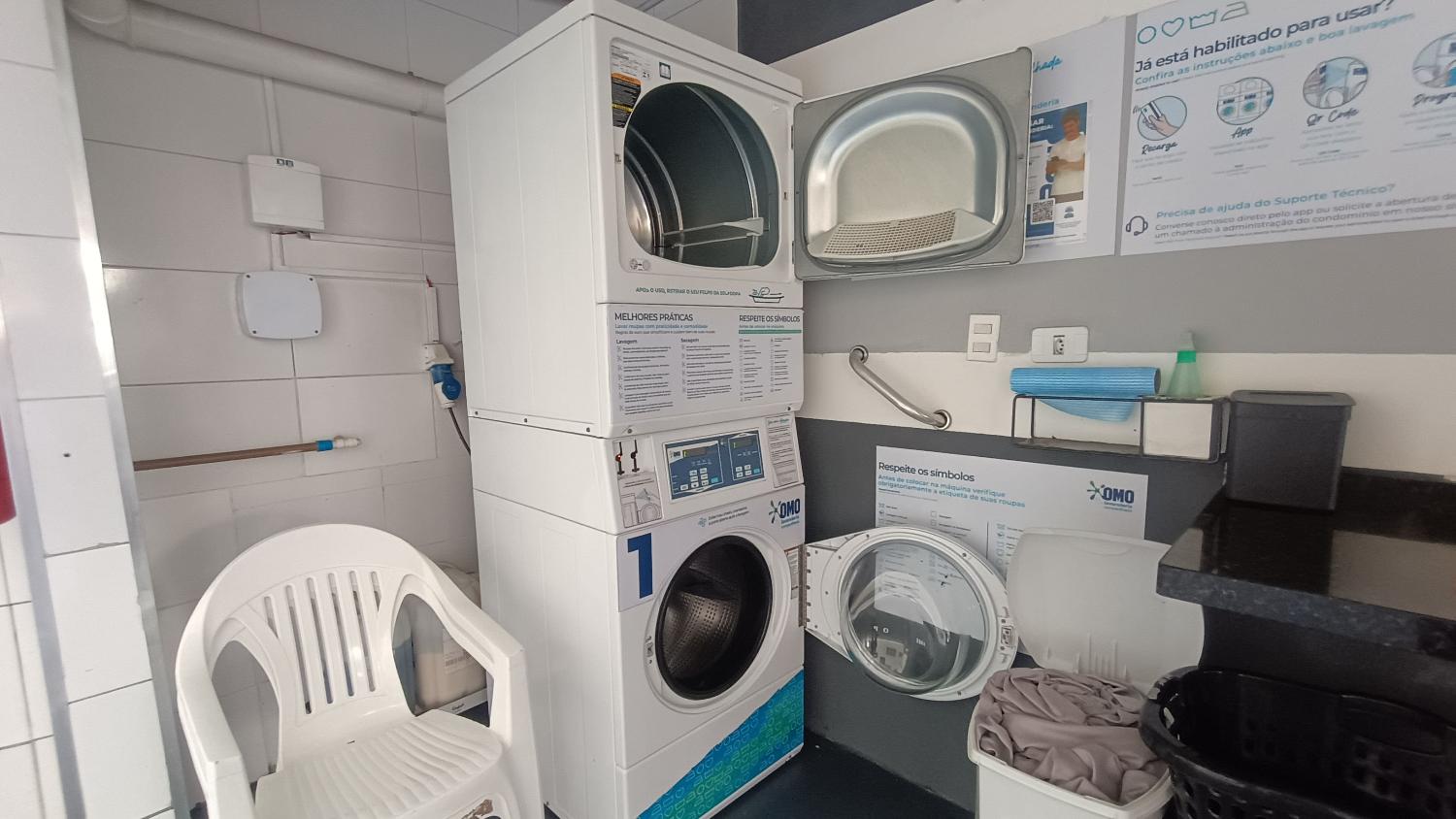O prédio de frente para o mar possui 2 elevadores (atende PcD),garagem coletiva por ordem de chegada, portaria física 24 horas, espaço de convivência, bicicletário fechado, lavanderia automática (modelo pay-per-use).